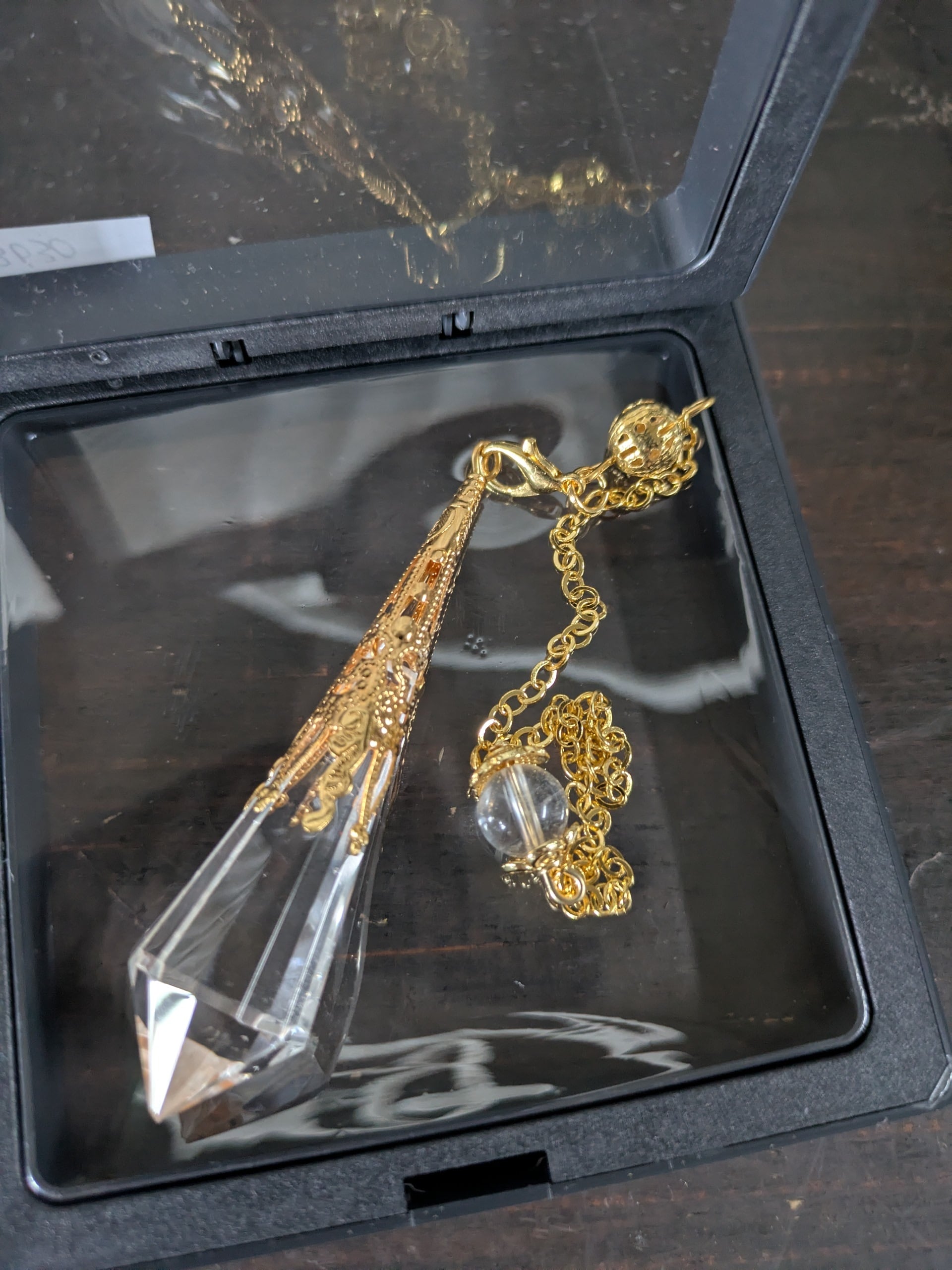 ゴールドの装飾が美しい聡明なネルギーのペンデュラムです。